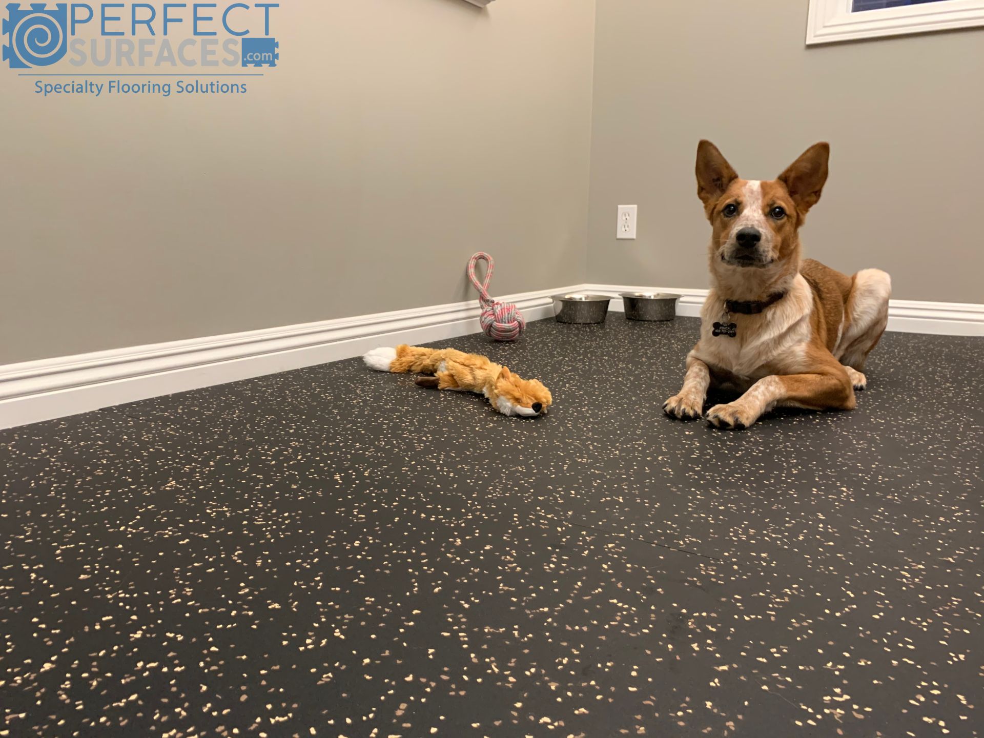 Strong enough to protect the subfloor beneath, vulcanized VersaRUBBER® dog flooring also boasts increased tensile strength and increased resistance to abrasion to guard against physical damage (such as claws punctures) to the surface. Low odor VersaRUBBER® animal & dog floors have virtually no off-gassing, keeping the “rubber smell” to a minimum; and the inherent sound- and shock-absorption properties of rubber animal flooring aids in the reduction of ambient noise from barking, as well as vibration transmission from active, excitable animals. Durable, long-lasting VersaRUBBER® Dog & Animal rubber flooring mats are the ideal rubber flooring solution for any animal-friendly space with exposure to moisture, excessive use, and heavy traffic.
