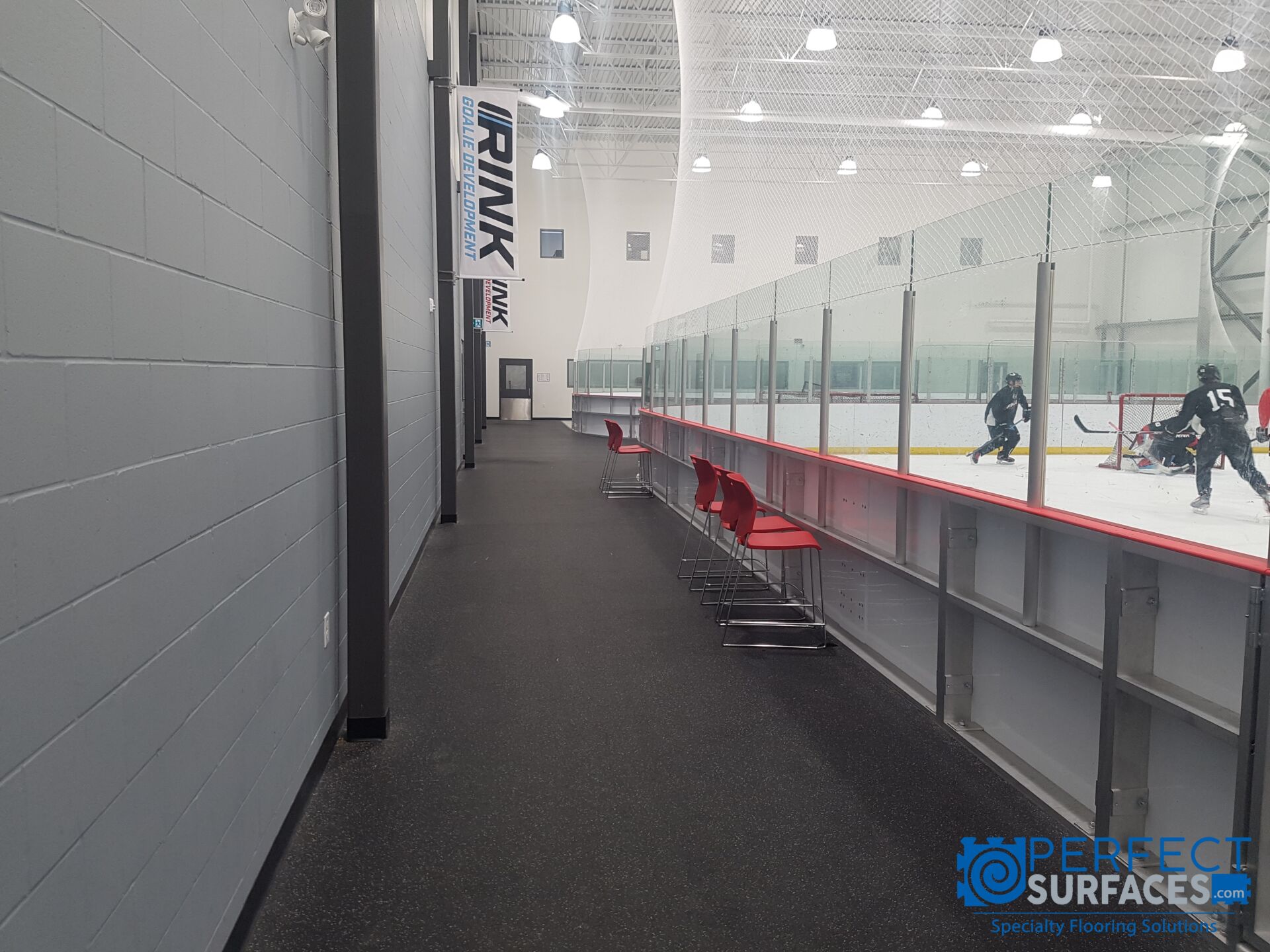 Ideal applications for long-lasting Gator® PRO ice rink rubber mats include hockey training facility rubber floor, hockey locker room rubber floor, arena concourse rubber rolls, curling arena rubber flooring, hockey arena rubber flooring, players bench rubber rolls, hockey rink sheets, hockey ice rubber rolls, interlocking rubber arena tiles, synthetic ice surround rolled rubber flooring, practice shooting rubber rolls, arena lobby rubber floor mats, hockey bench rubber tiles, or anywhere else that a slip-resistant, durable and easy to clean rubber floor is required at the rink.